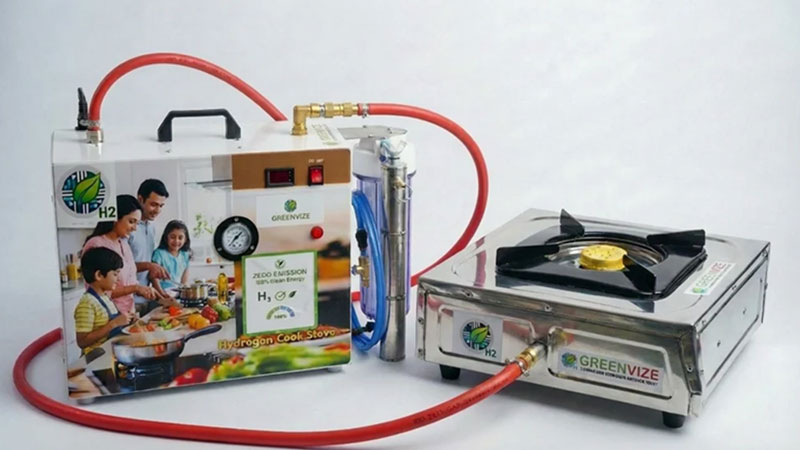 Индийская нефтегазовая компания Greenvize представила экологически чистую газовую плиту для приготовления пищи в стеснённых условиях. Плита вырабатывает из чистой воды водород и сжигает его в процессе